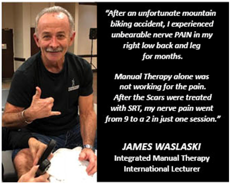 microcurrent waves through the scars, this simple and discomfort free procedure works by reducing dermal trauma, adhesions and fascia restrictions – proven to deliver 73.2% pain relief after a single application.  (IJCAM 2017)  SRT may be safely applied clinically or at home.